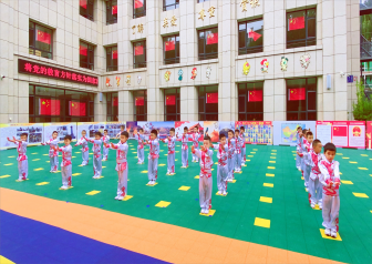 瞧!他们目光坚定,他们整装待发。小小旗手们迈着铿锵有力的步伐护送国旗,随着五星红旗冉冉升起,我们爱国的心也愈发强烈!
