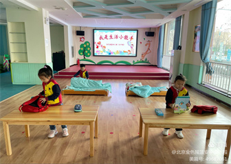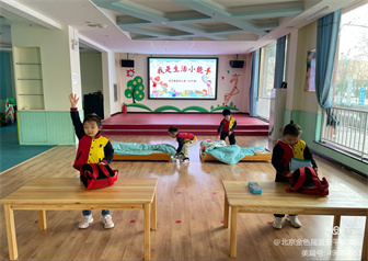 此次活动内容主要针对于内务整理,大班整理书包、被褥,中班自己脱穿衣服,婴小班自己脱穿袜子、鞋子。