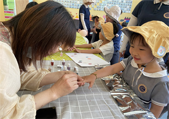 我们组织了一系列丰富的游园活动,项目一是艺术家会场,有娃娃涂涂乐、扎染、美甲和绘画卡通脸分项目,孩子们都很感兴趣。项目二是运动健儿会场,有捕鱼达人、水枪大战和赛龙舟项目,游玩场面异常热闹!项目三是我们婴大一班组织的时光记忆,为孩子们拍下了意义非凡的照片,有趣又吸人眼球!