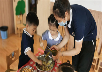 通过听端午节由来的故事,孩子们都知道了每年的五月初五是端午,了解了端午节特有的习俗,知道端午节这天,大家都会吃特别的食物——粽子;要在门上插上艾草;人们要举行赛龙舟比赛;孩子们要带上香袋等等。以此增强了幼儿爱家乡,爱祖国的情感。生活是教育的源泉,节日是教育的契机。在动手动脑中,孩子们感知端午、走进端午、品味端午,体会着传统节日的快乐与童趣。
